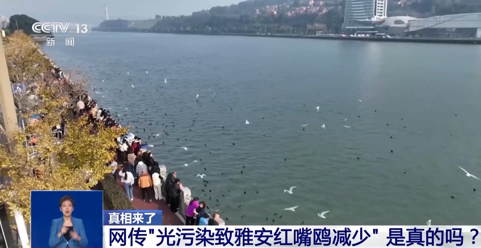 雅安市雨城区委外宣办副主任 张颖:通过网络巡查,发现有网友在网上发布了一条视频,质疑今年的红嘴鸥数量有所减少是因为光污染造成的,接到这个情况,我们就立即向生态环境局以及林业局进行了核实。经过核实,发现具体的情况与网民反映的情况不相符,于是我们就发布了一条辟谣的视频,辟谣的信息发布以后,这个信息发布者也主动删除了原视频。