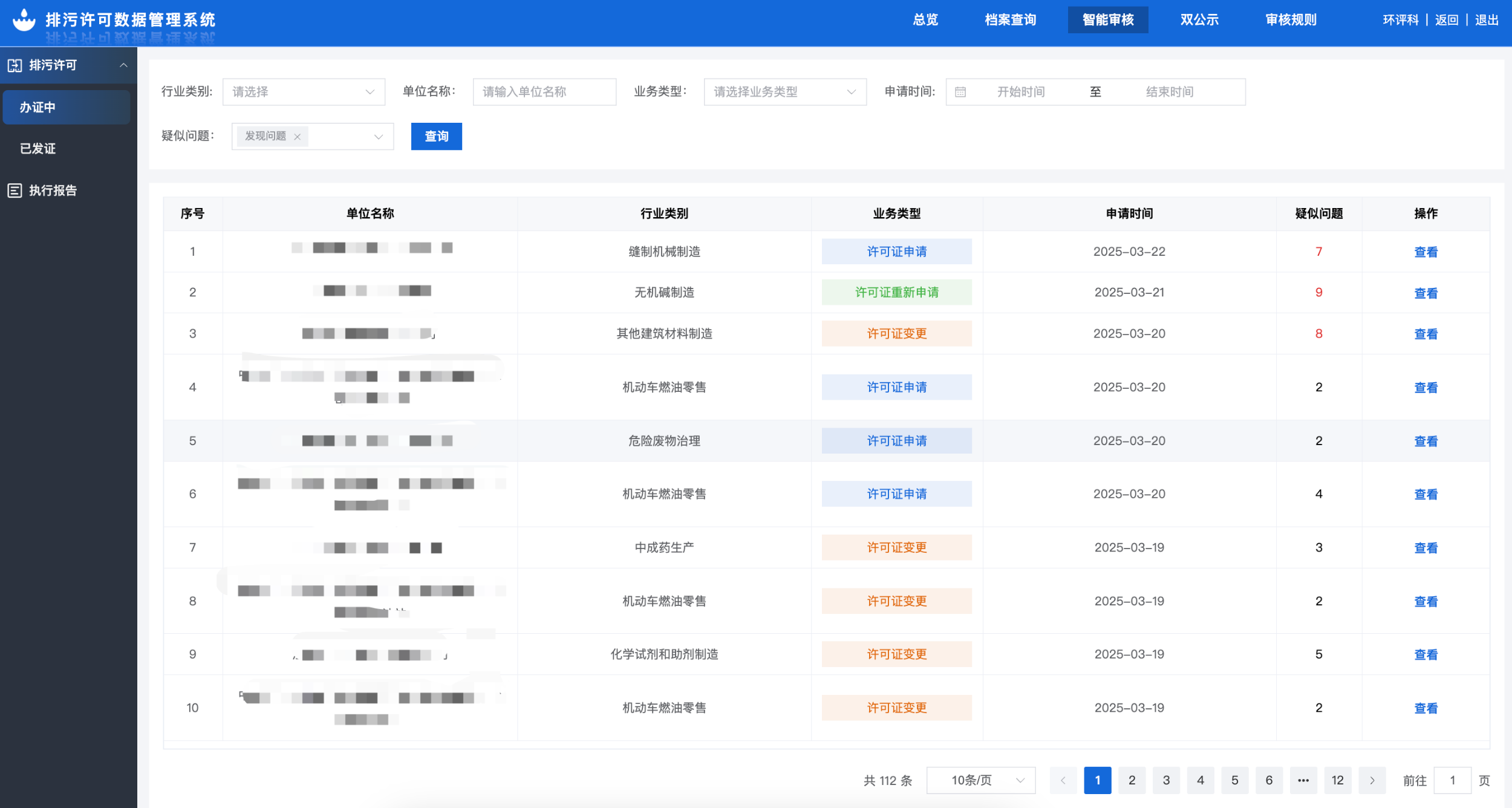 此外,这一系统能够智能精准识别数据逻辑矛盾、排放量计算误差、工艺合规性偏差等九大类200余项问题,大大提高了排污许可审核的准确性和科学性。