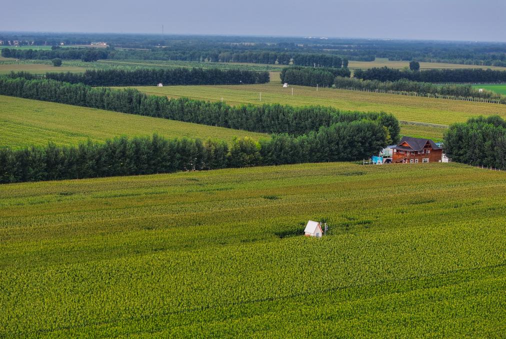 这是在科尔沁左翼中旗,大面积使用浅埋滴灌技术的玉米田(无人机照片,2024年8月18日摄)。新华社记者 连振 摄