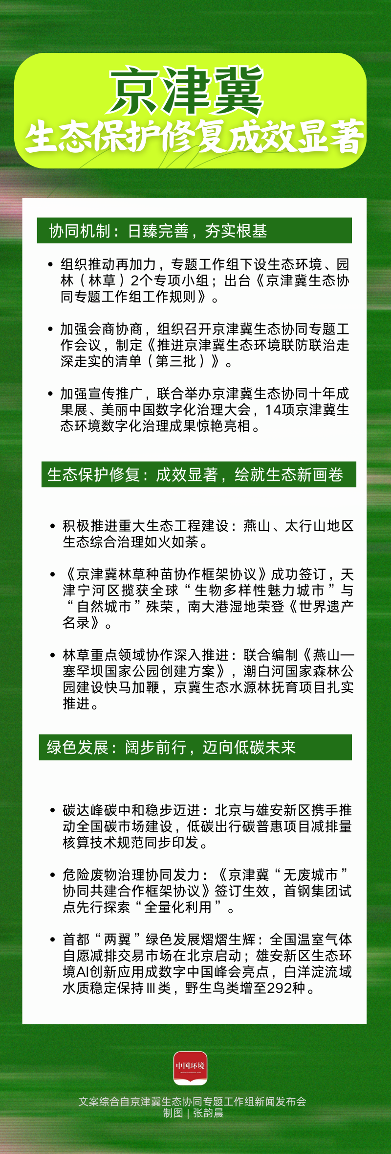 2025年是京津冀协同发展11周年。就在第四批省级生态环境保护例行督察进驻前半个多月,京津冀协同发展11周年新闻发布会在北京召开,肯定成绩的同时也提出新要求。