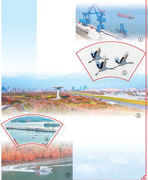 图①:长江岸边,江西九江柴桑区赤湖公用码头,采用全封闭胶囊式穹顶进行仓储、装卸,有效控制和降低扬尘、噪声。