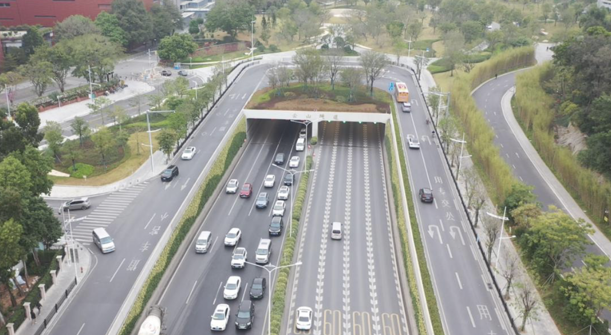 2023年3月25日,云山隧道全线及云城东路隧道主线开放通行,从此,白云新城的交通压力得到有效缓解。两隧道的开通对于综合提升周边的景观以及城市空间、进一步优化白云新城路网结构具有重要作用。同时,两隧道顶部开放空间将白云国际会议中心、相邻地块及白云山直接联通,满足城山一体景观要求,有利于加强周边地块紧密联系,推动周边区域经济高质量发展,更大程度上实现“青山入城”格局。“隧道开通后,从广州体育馆到白云山西门仅需要2分钟,太顺畅!”市民纷纷为这一民生工程“点赞”。