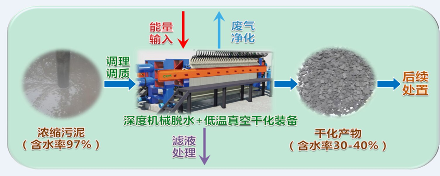 目前净水厂常用的板框压滤机和叠螺压滤机,仅能将污泥的含水率压缩至60%—80%,高含水率的污泥,不仅难以有效压缩,还容易造成环境污染。针对这一难题,天河区鼓励大观净水厂采用BOT(建设—运营—移交)模式建设运营,同时引入低温真空脱水干化一体化技术。该技术利用环境压强减小水沸点降低的原理,创造性地将机械压滤脱水与真空干化技术合为一体,将污泥含水率由97%一次性降至30%—40%,最大限度地实现污泥的减量化。完成处理后的污泥使用全封闭污泥运输车运往发电厂、水泥厂等利用处置单位作为焚烧发电燃料和建材利用,助力污泥处置无害化、资源化。