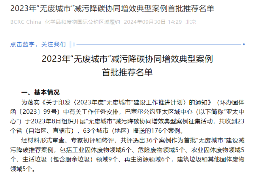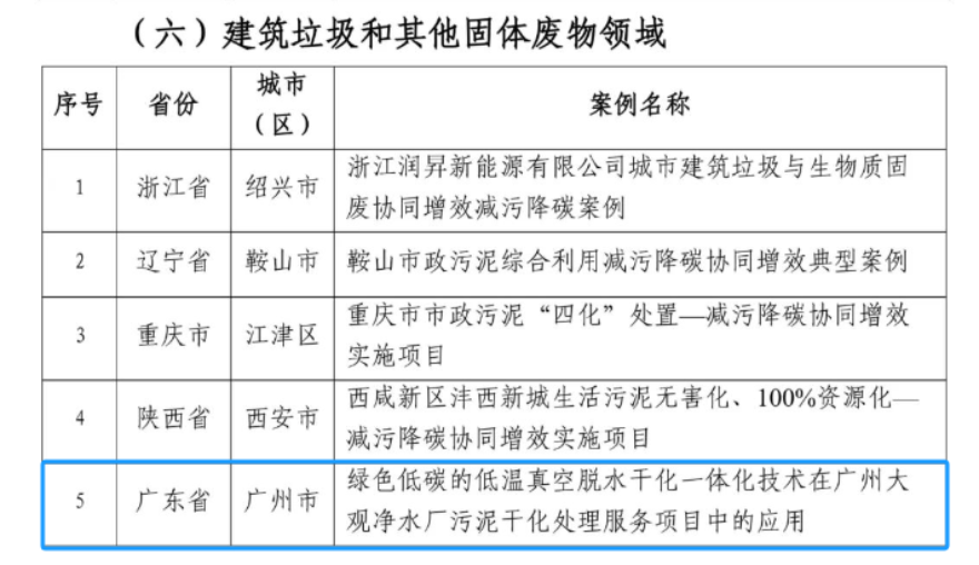 开展“无废城市”建设是深入贯彻落实习近平生态文明思想的重要举措,是推动减污降碳协同增效的内在要求,是推进广州建设美丽中国城市样板天河实践的具体行动。近日,巴塞尔公约亚太区域中心(以下简称“亚太中心”)公布了2023年“无废城市”减污降碳协同增效典型案例首批推荐名单,全国共评选出6大领域36个推荐案例,其中天河区推荐的《绿色低碳的低温真空脱水干化一体化技术在广州大观净水厂污泥干化处理服务项目中的应用》案例是广州市唯一入选案例,也是建筑垃圾和其他固体废物领域全省唯一入选案例。
