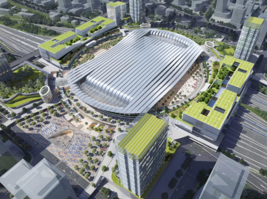 巧做“加法”,以扩绿促增长。白云站采用绿色建筑和智能建造技术,充分践行绿色、低碳理念。一是高架候车厅底板采用叠合板装配式结构。每平方米减少碳排放1.28kg,碳排放降低23.3%;二是站房采用东西光谷设计。将自然光线引入地下空间,实现了自然采光,降低了照明用电需求。三是打造南北呼吸广场、生态植被屋面。增加了绿色碳汇,营造舒适宜人的站场空间。四是建设屋顶光伏项目。已铺设光伏系统总面积约为18500平方米,年均发电约366万度,年均减少二氧化碳排放约3500吨。五是中央空调采用冷源群控系统。在保证旅客舒适度的前提下智能调节空调系统的整体运行,预计综合年平均节能率达30%以上。