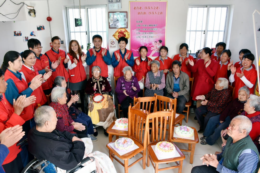 ▲山东威海文登供电公司员工与帮扶敬老院老人一起过重阳节。