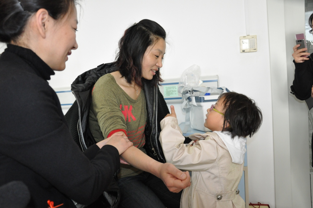 ▲2011年,注射动员剂后,女儿茸茸对吕明玉伸出大拇指。