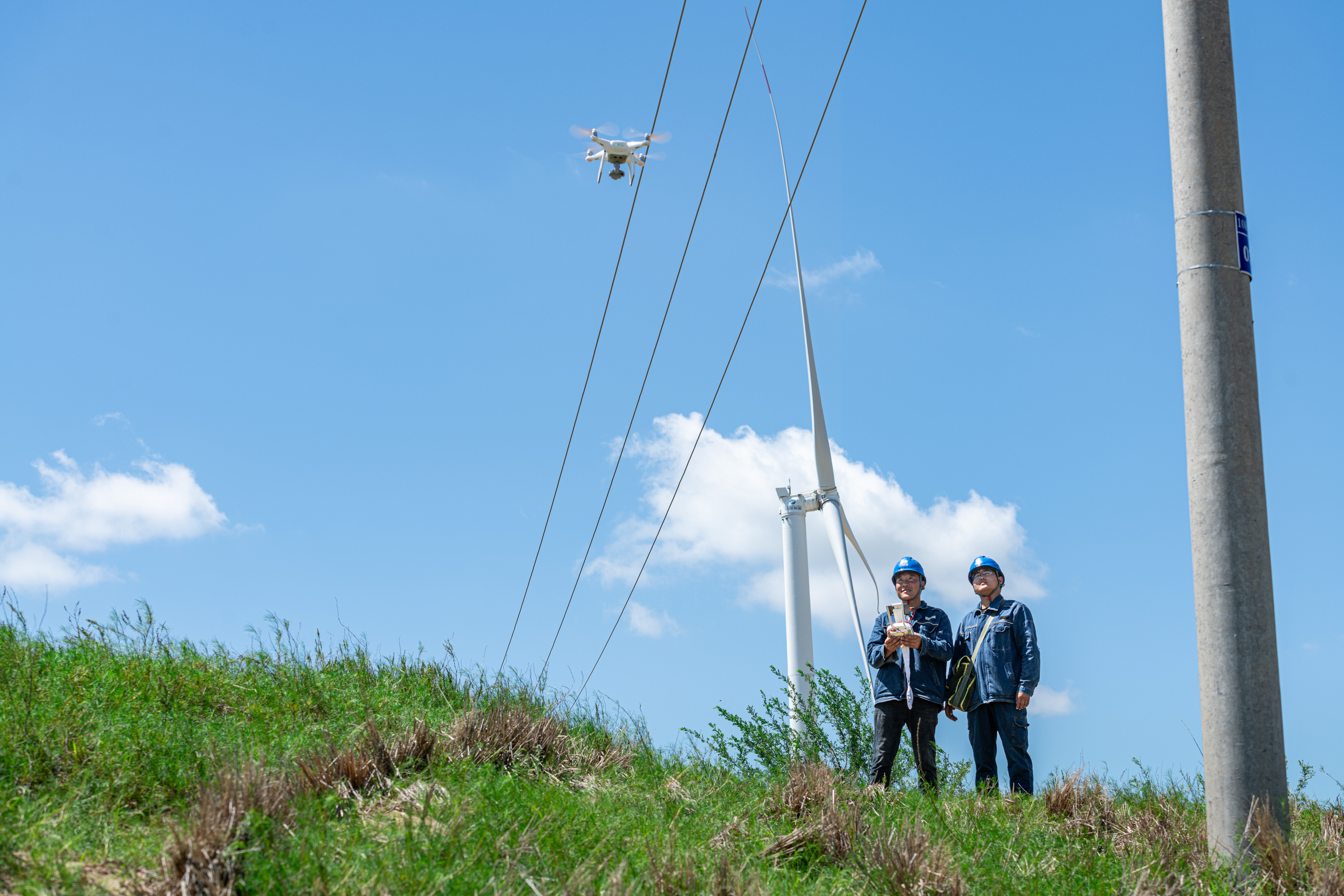8月13日,国网蒙东电力供电员工对10千伏南图线进行无人机巡检。张东雷/摄