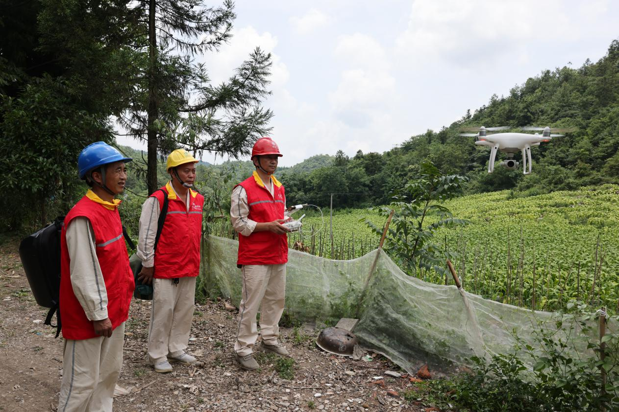国网彭水供电公司员工利用无人机查看烤棚附近线路。储潇/摄