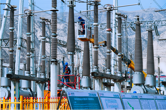 图为国网兰州供电公司员工在330千伏海石湾变电站开展隔离开关更换工作。史双绚摄