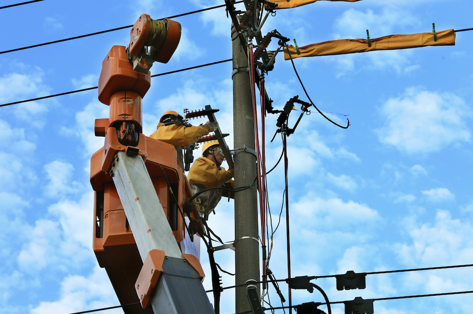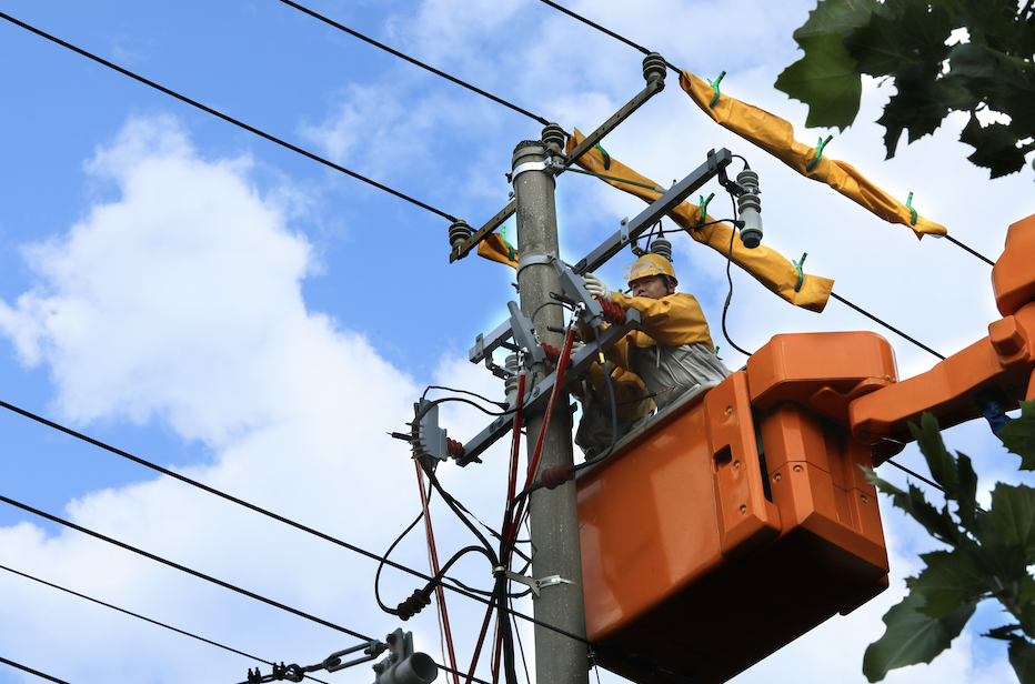夏日清晨,国网上海市区供电公司工作人员在长宁区华阳路开展不停电作业,带电调换杆上熔丝和避雷器,提升设备安全性能,确保迎峰度夏期间该地区用电可靠。