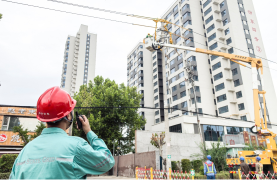 图为8月6日,国网临汾供电公司提前部署,采用不停电作业技术,高效完成汾东四号还迁小区临时供电转正式用电的工作,为400余户居民安居生活提供安全可靠的电力保障。 (苏亚兵摄)
