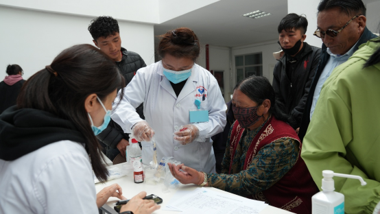 抵达玛多后,专家组不顾强烈高原反应,迅速投入工作。诊台前,他们以精湛医术和满腔热忱,细致问诊、耐心解答,并免费为患者赠送急需药品。