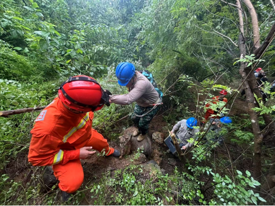 图为7月27日18时,国网北京密云供电公司抢修人员携带应急发电设备,徒步进入冯家峪信号中断区域运送设备,并同步开展线路勘察工作。林一轩 摄
