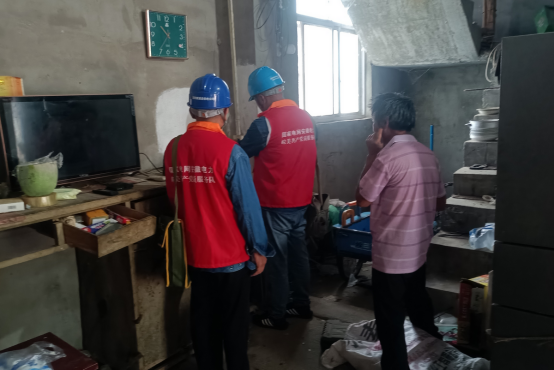 图:濉溪县供电公司“燕飞来”志愿者服务队在给老人家检修线路。(任明伟摄)