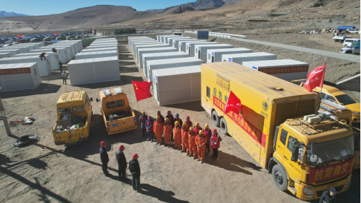 ▲电力员工在定日县抗震抢险