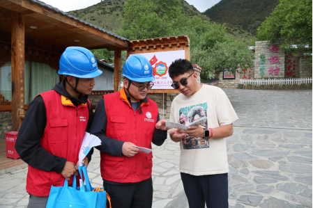 ▲电力员工在嘎拉村开展用电知识宣传