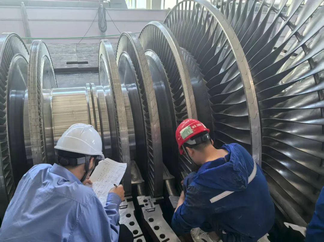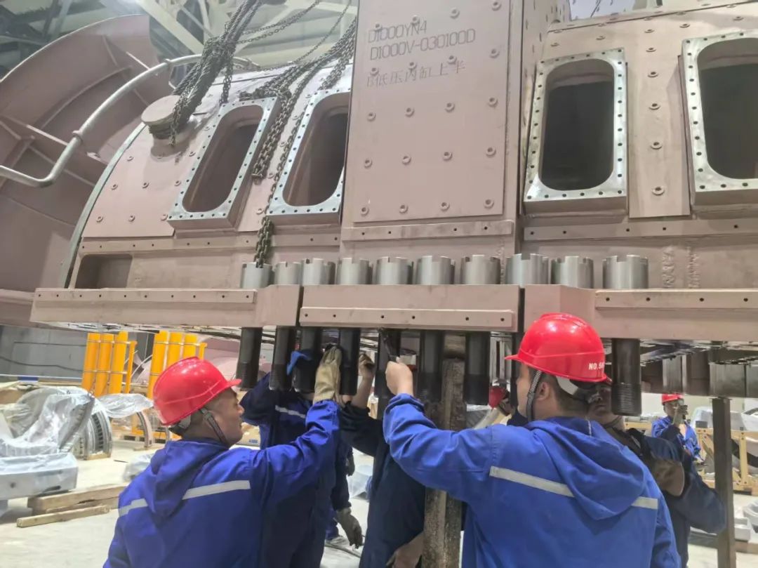 安装进度有序推进。1号炉受热面安装完成92%,焊口累计完成50000余道;2号炉受热面安装完成49%,焊口累计完成30000余道,焊接质量均符合高标准要求。1、2号炉烟风系统各类设备在安装人员的精心操作下,逐步组合成一个有机的整体。汽轮机作为电厂的“心脏”,其安装进度直接关系到机组的整体投运。目前,1号机组汽轮机本体设备安装已完成接近50%,GIS设备安装完成,主变、高厂变本体就位,启备变附件安装完成,这些关键电气设备的安装就位,为后续反送电作业提供了重要保障。