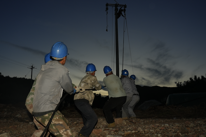 一旁的村民感慨地说:“昨天晚上,供电员工在新立的电杆上架线,下面就是流速极快、怒吼着‘哗哗’作响的河水。可他们丝毫没有被这凶险的环境吓倒,一心只为周边村庄早日恢复供电。”