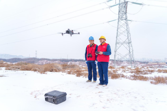 2024年寒冬,海拔1500米山区,气温零下14度。寒风似刀子一样刺割着脸颊,裸露在寒风中的双手很快就有冻僵的感觉。“来,云台给我,你暖暖手。”由于不能戴手套,王子雄和窦万钧在现场就这样交替着操纵无人机进行特巡。自12月13日进驻平川后,他们已在冰天雪地的平川连续奋战了8天,共完成110千伏沙郭一线、下财线等线路70多公里、近300基杆塔的的红外测温及交跨限距测量。