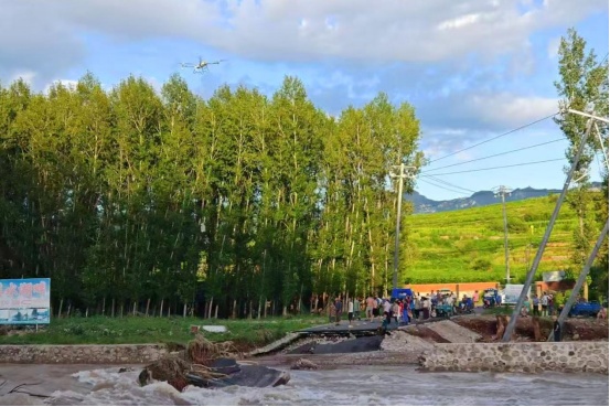 “再难也要想办法,哪怕先把应急电源送过去。”看着二三十米宽的河面和奔腾的洪水,朱鹏程快速思考着,而无人机是此时此刻最有希望快速跨越“天堑”的载体。得知镇政府有大型无人机,朱鹏程便第一时间与负责人进行商议,通过无人机向河对岸投送延续生命的应急电源。