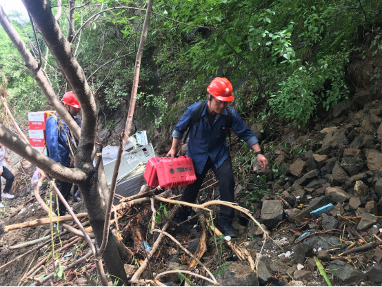 不多时,一支14人的电力抢修“先遣队”组建完毕。除了抢救工具,队员们还随身携带5台移动充电电源。每台20多公斤的重量,在平地上尚且吃力,要在泥泞湿滑的山路上跋涉,更是难上加难。