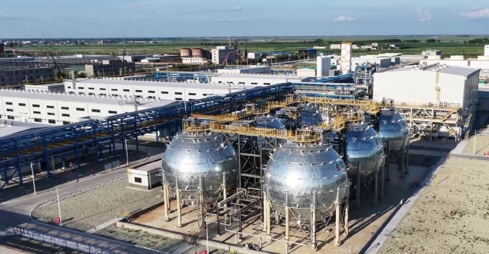 图为国家电投吉电股份大安风光制绿氢合成氨一体化示范项目液氨罐区
