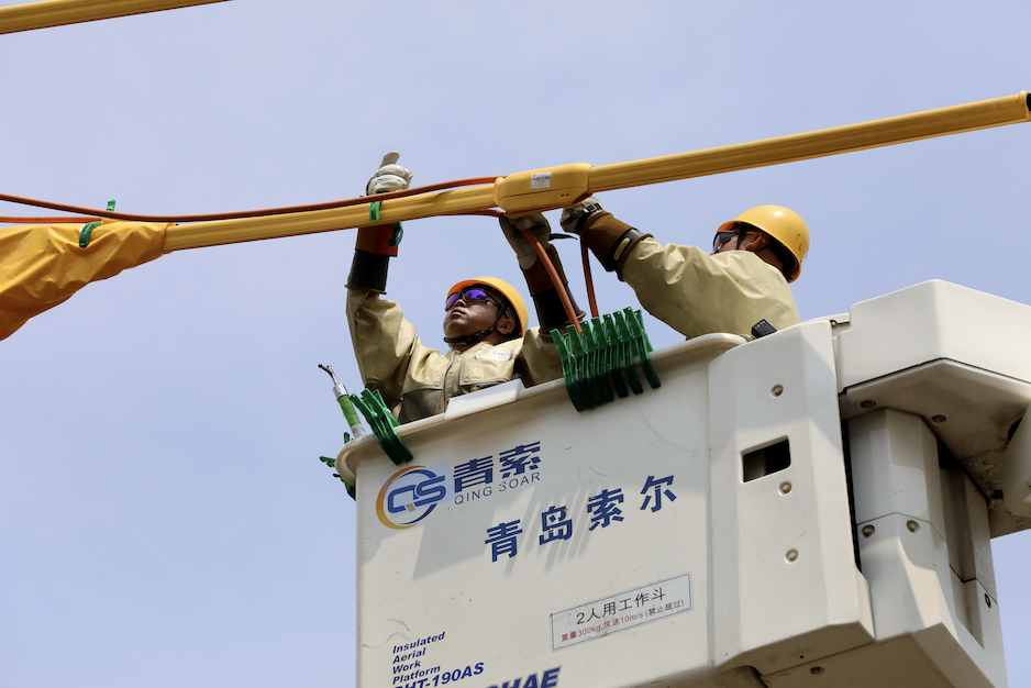 “第一组王湘洲和张国明一个斗臂车,潘飞和徐航一个斗臂车,完成临时旁路系统的搭建,并将原有线路负荷转移。天气炎热,大家坚持一下,如有不适,务必随时告诉我。”江鑫叮嘱即将执行任务的同事。