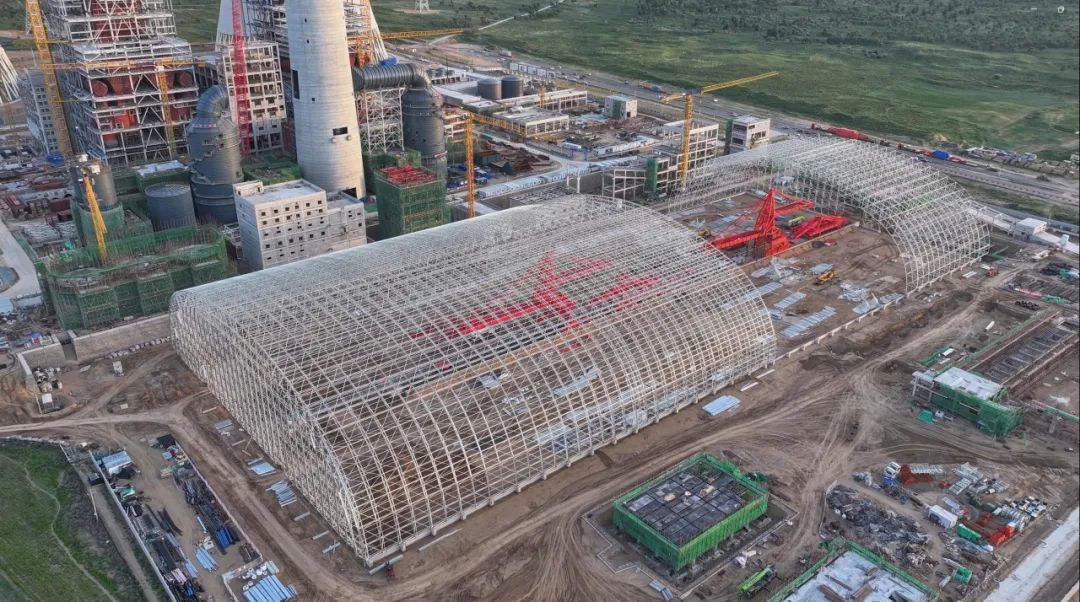 在准大电厂2×100万千瓦煤电一体化扩建项目(简称准大二期项目)现场,夏日热浪与建设热情一同升腾。塔吊林立,机械轰鸣,运输车辆往来穿梭,混凝土泵车将灰流注入高耸的建筑框架,2000余名建设者戴着安全帽、系着安全绳,在各个作业面上紧张地施工着。