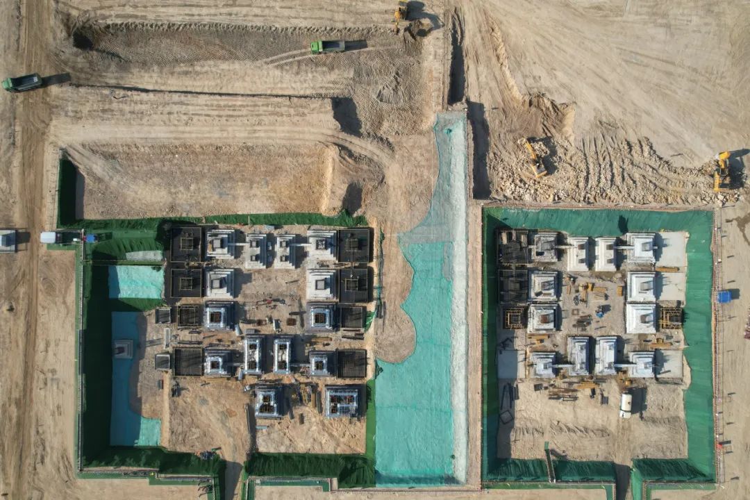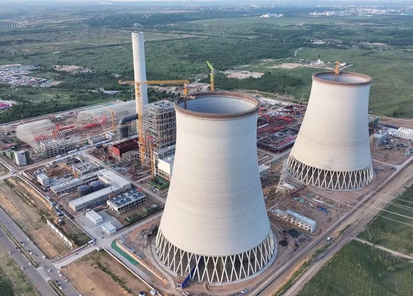 截至目前,1号机组汽轮机本体安装完成10%,2号机组汽轮机本体安装完成5%,锅炉受热面吊装完成78%,70000余道焊口构筑起坚实的“钢铁动脉”。启备变、高厂变、主变本体安装就位;两座百米间冷塔拔地而起,预计6月底实现到顶目标。全厂附属系统建(构)筑物完成80%,化学水车间、辅机干湿联合冷却塔等关键设施已完成砌筑,为后续设备调试奠定基础。