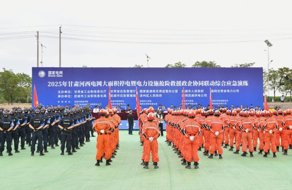 6月26日,2025年甘肃河西电网大面积停电暨电力设施抢险救援政企协同联动综合应急演练在武威举行。国家电网西北分部、西北五省公司相关人员全程观摩演练。