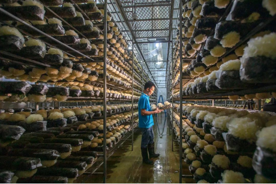 在福建省宁德市古田县大桥镇,一排排长条状的光伏板穿插在群山的绿野中,这些在光伏板下供给的是当地经济发展的“当家花旦”——食用菌。