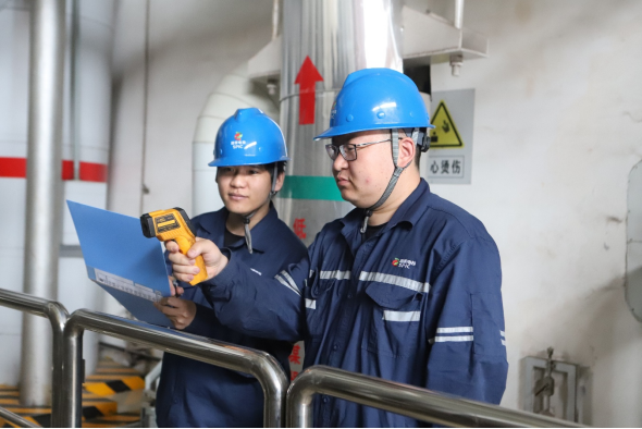 ▲内蒙古大板发电有限责任公司热工班组深入高温区域开展日常巡检,以细致排查保障设备安全稳定运行。