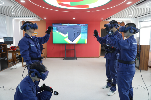▲内蒙古大板发电有限责任公司以VR技术赋能培训,新学员沉浸式学习操作方法。