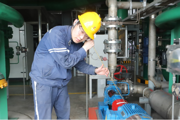 ▲内蒙古大板发电有限责任公司运行巡检人员对重要主辅机设备开展日常巡检,以专业专注确保设备可靠运行。