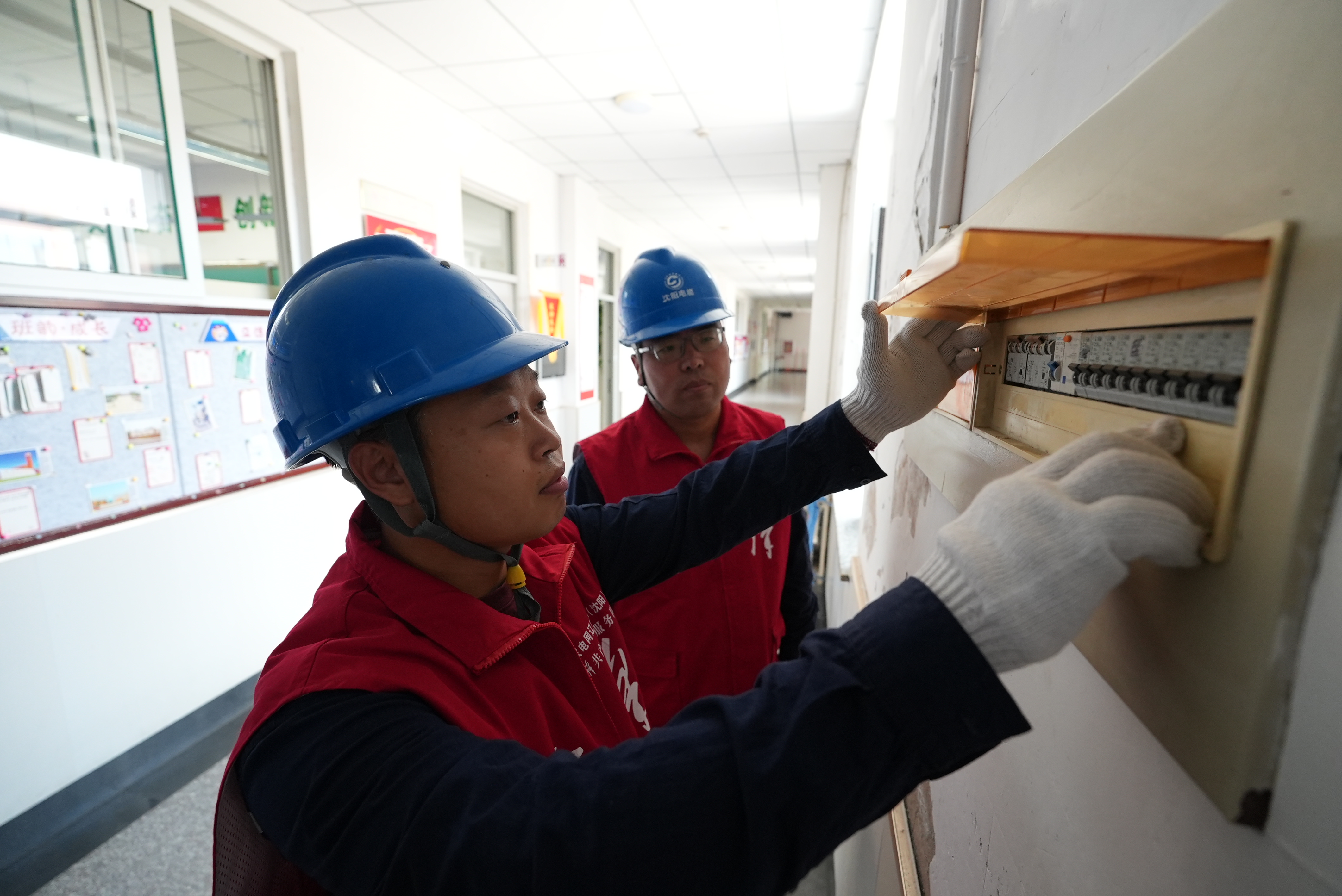 6月18日,国网沈阳供电公司保电人员检查、测试新民市高级中学配电箱。史灵丰/摄