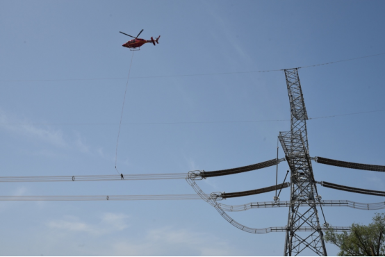 6月12日,在甘肃省平凉市泾川县境内,国网甘肃超高压公司与国网电力空间技术有限公司开展联合作业,顺利完成±1100千伏吉泉线3704号、3708号两处直升机带电消缺,为特高压吉泉线“强筋健骨”,确保电力能源“大动脉”在迎峰度夏期间安全稳定运行。
