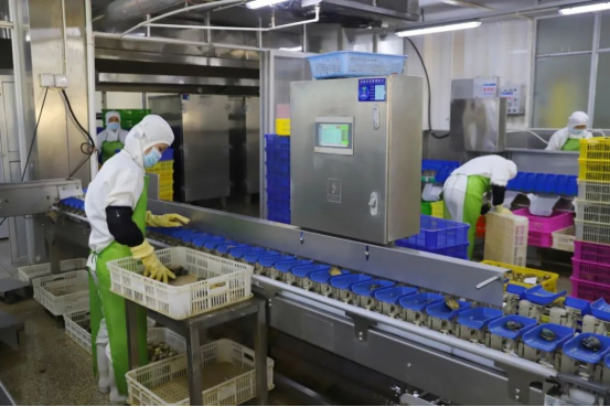 走进福州日兴水产食品有限公司,车间内一片繁忙景象,智能化设备火力全开,一框框鲜活的鲍鱼经过清洗、漂烫、冷却、速冻锁鲜等一系列工序,完成产品加工。“眼下正是我们的生产高峰期,日处理活鲍超40吨,加工生产线24小时连续运转,减少了传统渔业对人工和自然条件的依赖。”企业负责人江铭福说道。