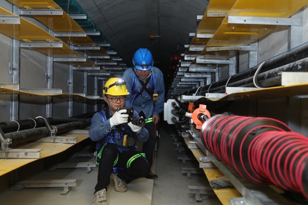 ▲5月28日,国网北京电缆公司运维南区六班人员对重点保障110千伏电缆线路进行巡视检测。(赵旌朝 摄)