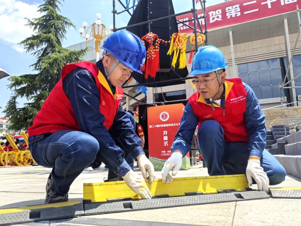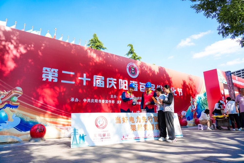 开幕式现场,身着红马甲的国家电网甘肃电力(庆阳南梁)连心桥共产党员服务队利用“连心桥·光明驿站”便民服务点发放用电资料,向游客普及用电安全知识,耐心解答游客关于新能源用电政策的疑问。当日,该公司“连心桥·光明驿站”服务人员共为游客发放用电宣传彩页100余份,“爱心”矿泉水100余瓶,让游客在感受非遗文化的同时,也体验到电力服务的温度。