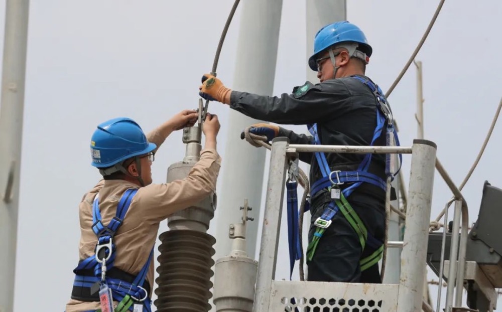 ▲国网莆田供电公司检修人员根据变电智能运检微应用推送的设备运检策略,组织对110千伏忠门变电站进行检修试验。