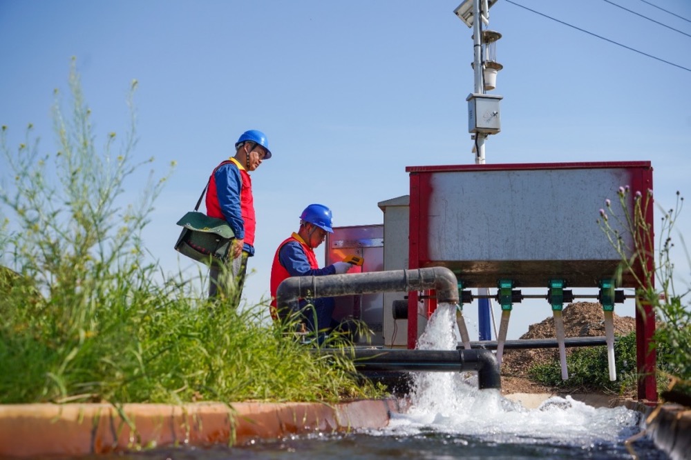 ▲国网山西运城供电公司工作人员在大禹渡灌区走访,帮助用户检查提水灌溉用电设施,宣传安全用电知识,保障灌溉用电安全可靠。