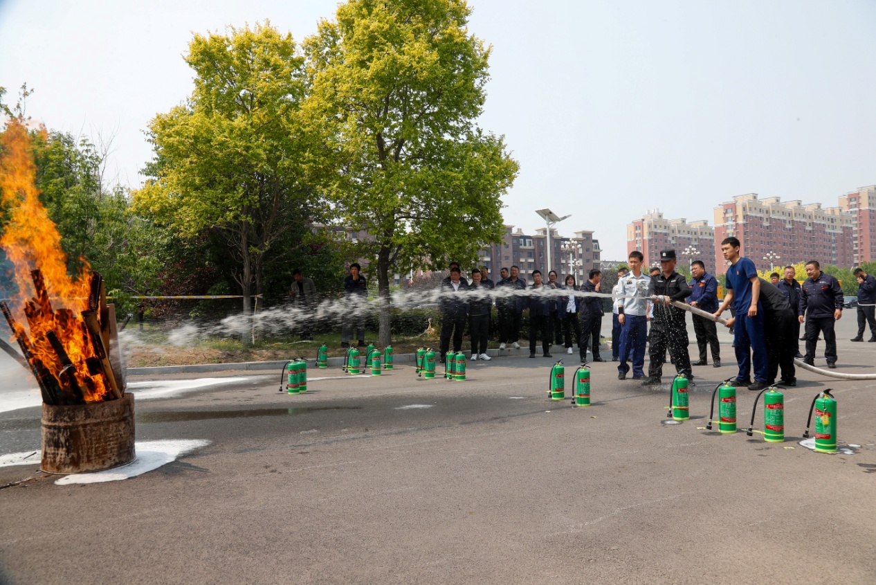 随后,在室外演训场的实操环节,消防队员演示灭火器“一提二拔三握四压”及消防栓使用要点,参训人员分组对模拟火场进行灭火器扑救,操作消防栓灭火。