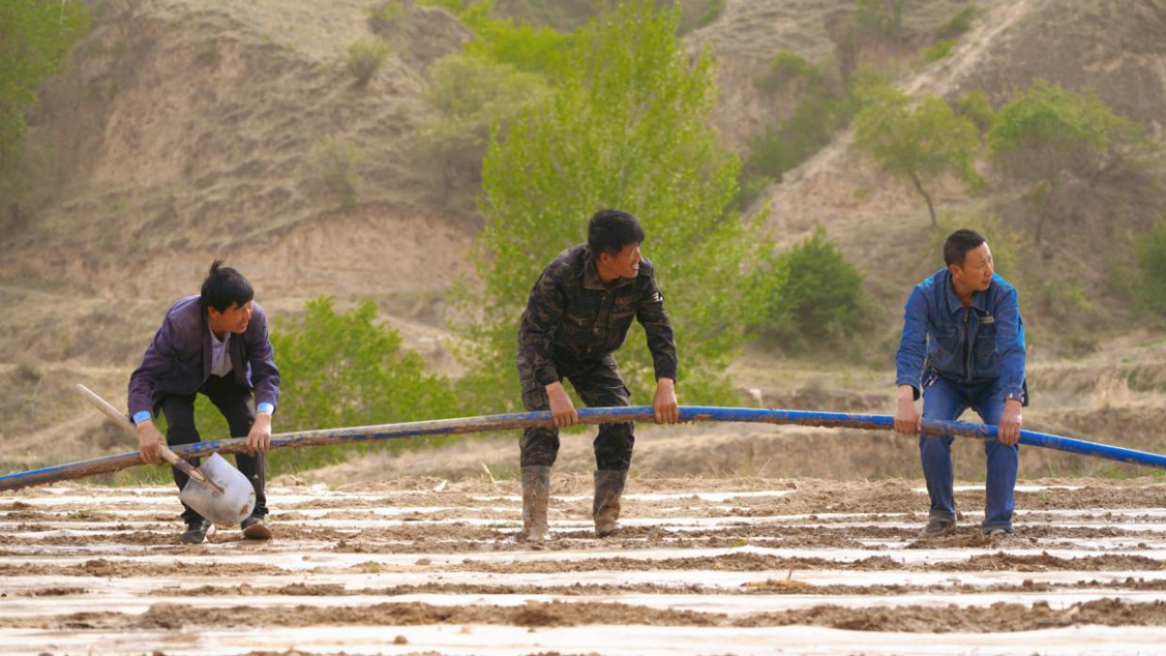 正午时分,骄阳似火,气温飙升至35℃。由国网庆阳供电公司共产党员服务队、驻村工作队和村民组成的“抗旱突击队”中,驻村书记许立权的忙碌身影格外醒目,作为在刘家坪村驻扎了两年的供电人,他早已将村民的事当作自家事。此刻,他顾不上擦去额头不断滚落的汗珠,一边指挥搬运设备,一边与技术人员核对安装细节。“大家加把劲,早一分钟通电抽水,庄稼就多一分活下来的希望。”他沙哑的声音里透着不容置疑的坚定。