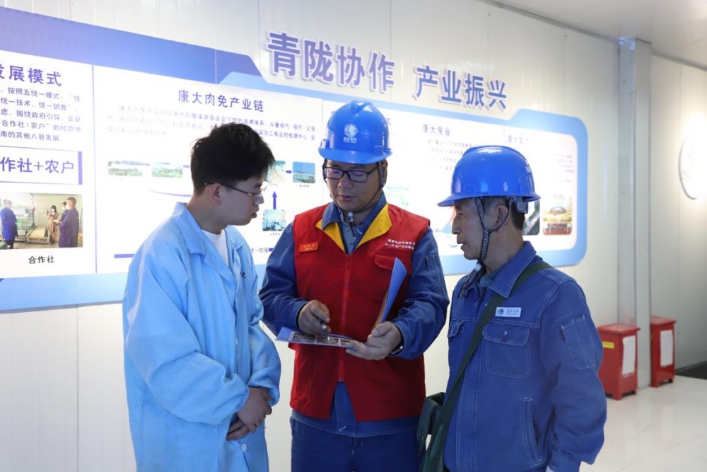 5月20日,国家电网甘肃电力(陇南金橄榄·武都)连心桥共产党员服务队队员魏国俊和焦从军身着工装,手持绝缘工具,穿梭在康大肉兔养殖基地的配电箱与生产线之间。他们在这里开展了一场“保安全、送服务”的专项行动,为养殖基地排查用电隐患,并向工作人员宣讲安全用电常识,用专业与热忱为乡村振兴注入“电力动能”。