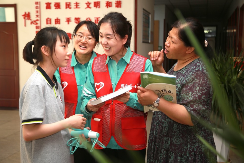 之前在与学校老师交流中,李雪婷得知听障部五年级学生魏舒涵家里情况后,一直想帮助这个女孩。魏舒涵的父亲腿部残疾,找不到合适的工作;母亲常年住院,生活无法自理,小舒涵一直跟着年迈的姥姥生活。春节单位结对互动时,李雪婷发现魏舒涵听力没有问题,语言上也能简单交流,但是性格有些孤僻,不太与人交流,看着孩子脸上没有一点儿笑容,雪婷很是着急,她想和这个孩子结对,有时间多陪陪她,带她走近大自然,听听音乐,让她感受到来自社会的关爱,帮她打开心扉快乐生活。得知舒涵喜欢读书,雪婷专门给她买了课外读本并跟她约定同读一本书,分享读书心得。舒涵高兴的用手语说,我有姐姐了,我有爱我的姐姐啦。
