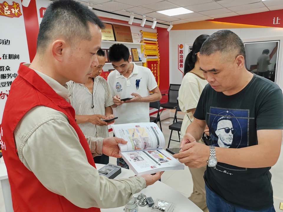 ▲全国劳模蒋祖立为残疾人家属讲解电力知识。