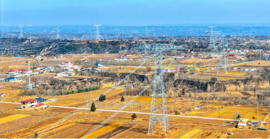 ▲陇东—山东±800千伏特高压直流输电工程(甘肃段)。韩甜甜/摄