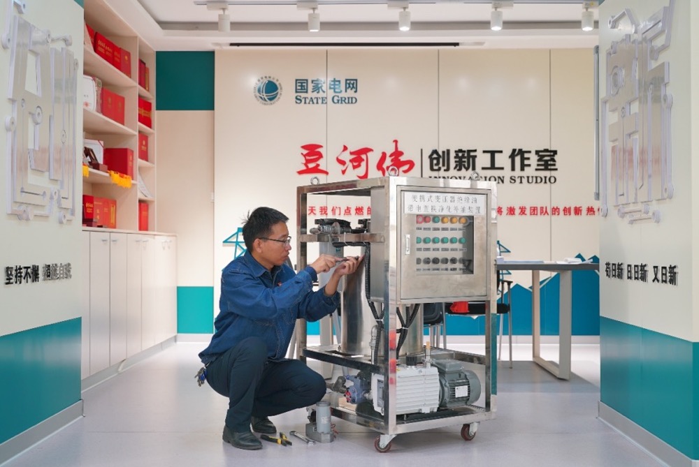 创新征程从无坦途。2022年极寒天气引发的变压器油危机,让豆河伟直面困扰行业数十年的储油难题。传统铁质油罐因密封缺陷导致油质劣化,他带领团队驻守试验场238天,研发出集成智能控制与实时监测的数智化储油方舱。这项革命性创新不仅将油品保质期延长至30年,更开创了移动式智能储油新模式,自2024年成果转化以来,共计参与补油工作56次,通过预测,每年为企业节约成本超500万元。