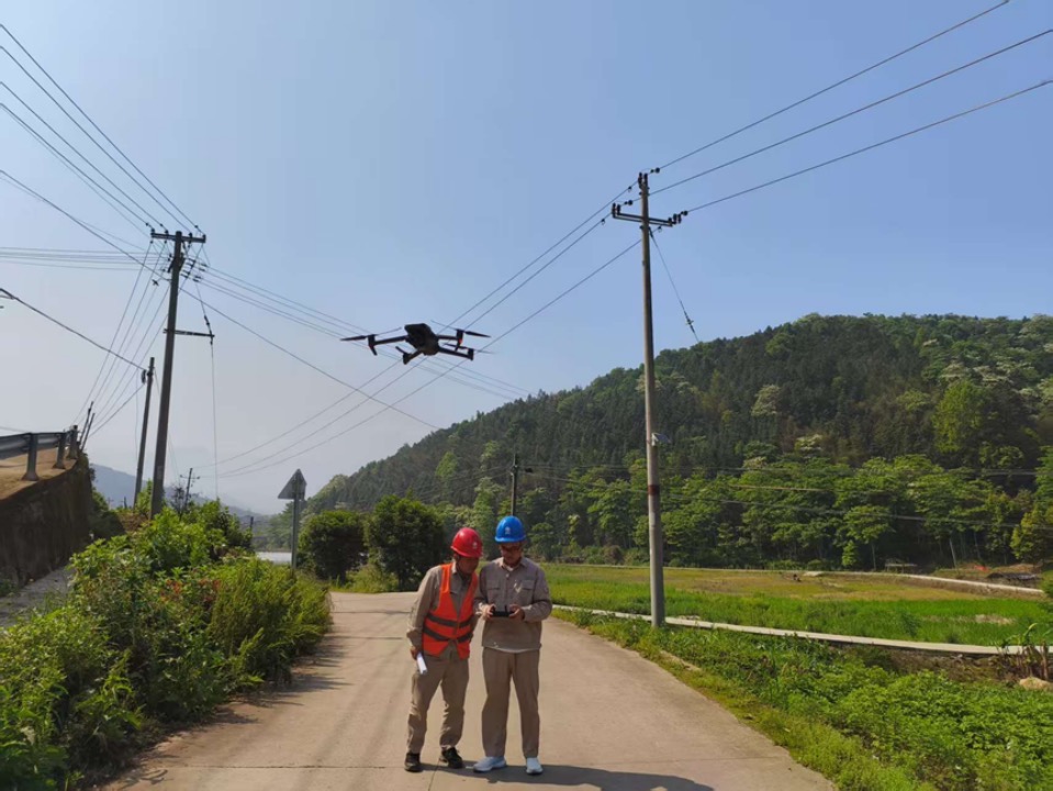 ▲供电员工操作无人机进行巡视。雷世凯/摄